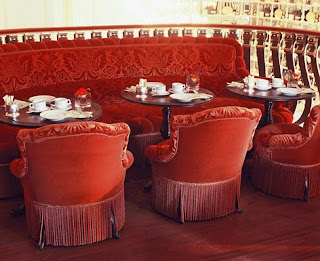 Besides having the most dreamy desserts, LADUREE shops have the most decadent interiors... always a magical experience at LADUREE... such a great use of color... shades of reds, blues, and creams used with such continuous flow making these rooms appear endless...